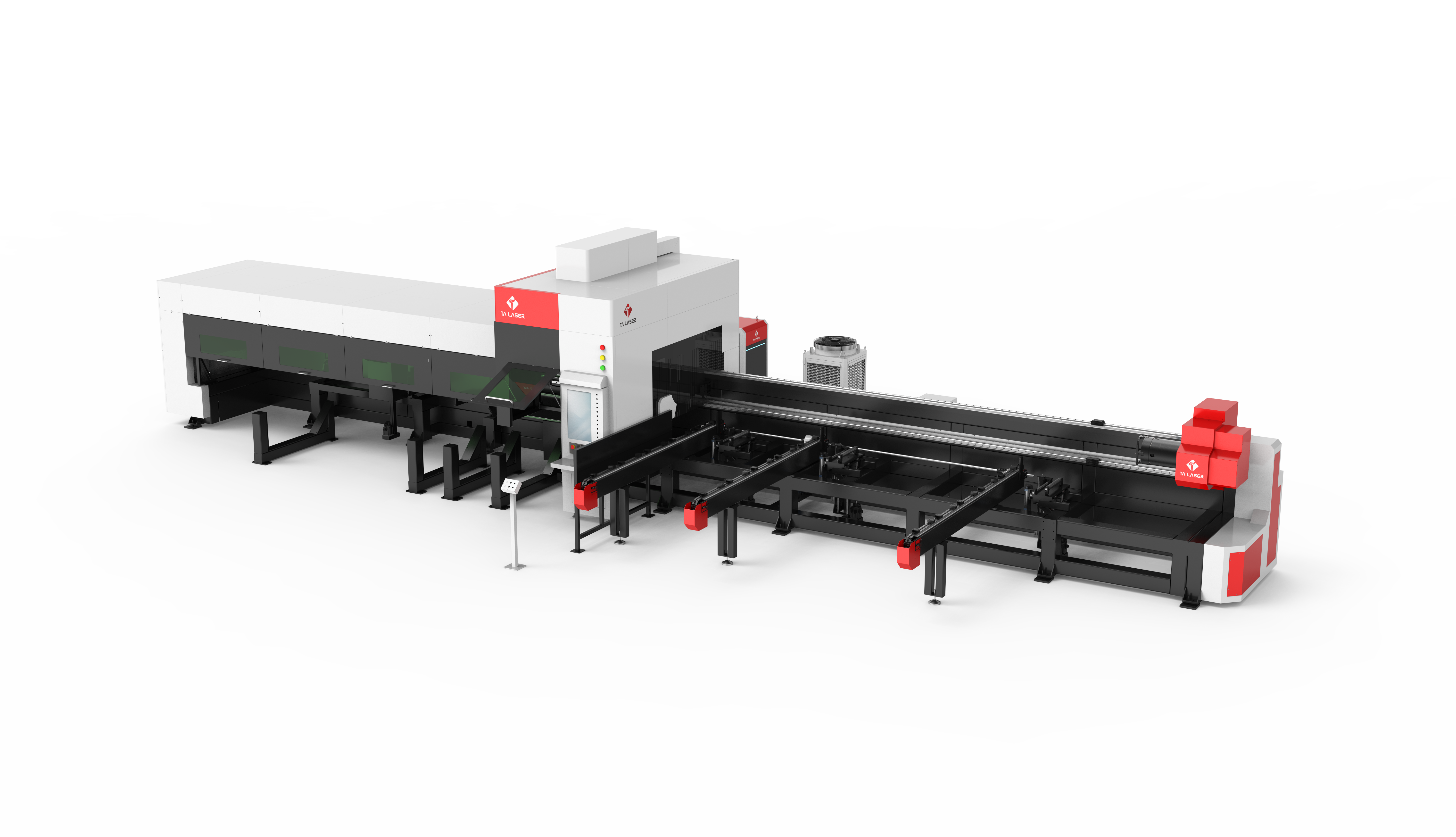 ![]() Sistema de control de bus Tres Chucks Deisgn, el sistema de control de bus, la cabeza del láser puede moverse hacia ambos del lado del mechón medio, puede realizar el corte de tubo entero. | ![]() Soportes dobles Está equipado con soporte de seguimiento + soporte de rodillos, que puede soportar efectivamente el tubo en el proceso de corte y descarga, garantizar la estabilidad y la precisión del corte. | ![]() Menos desperdicio Tres Chucks Deisgn, en el proceso de corte, cada vez que el tubo estará en una situación estable, para cualquier parte de la longitud obtendrá una precisión de corte perfecta. El sistema de carga/descarga automática es opcional. |
